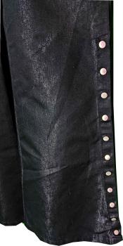 Seitliche Druckknöpfe in Silber zum offenen der Beinenden.