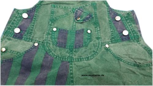In Dunkelgrün mit Blaue Streifen und vielen Nieten verziertStone Washed Optic.