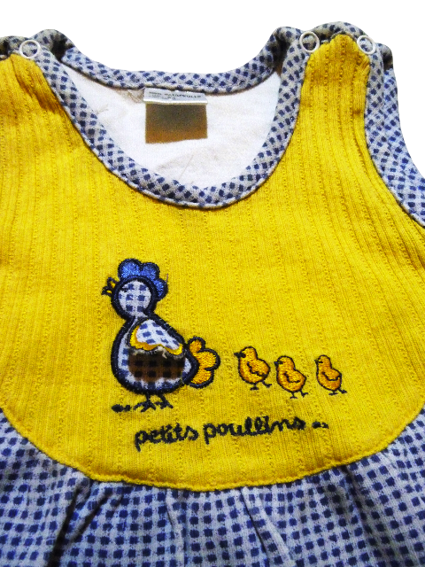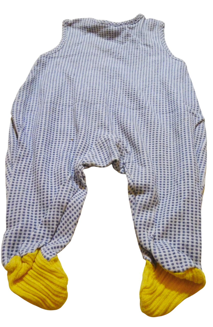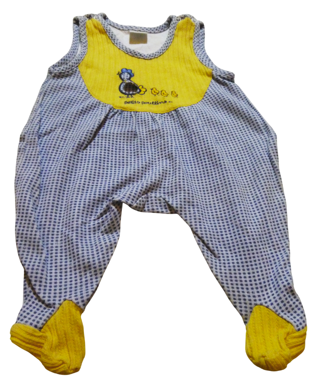 Strampler Blau Weiß Gelb Karo mit Entchenfamilie gr. 50