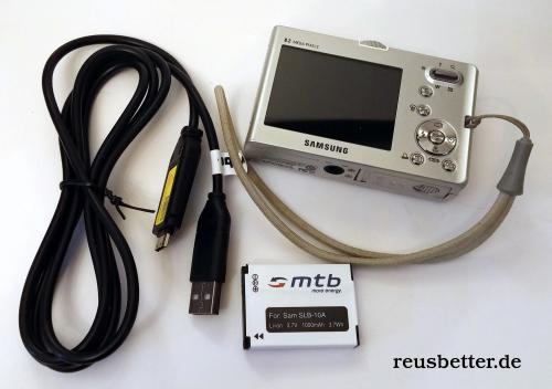 Lieferung: Samung Kamera mit Handschlaufe, neuem Ersatzakku und USB Ladekabel