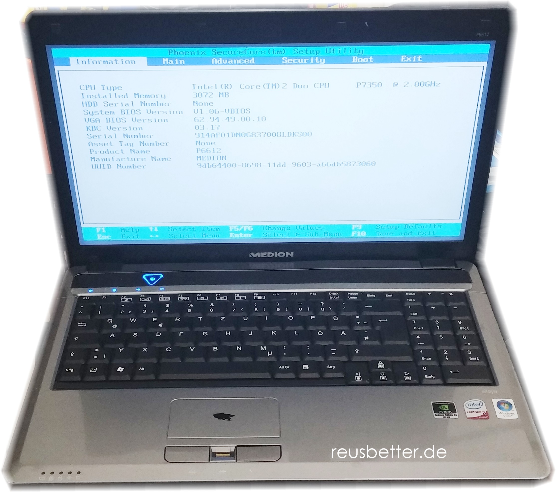 Modell: MD 97110 | Bildschirm: 16 Zoll HD | Prozessor: Intel Core 2 Duo 2x2 GHz | RAM: 4 GB | Festplatte: 320 GB SATA II
