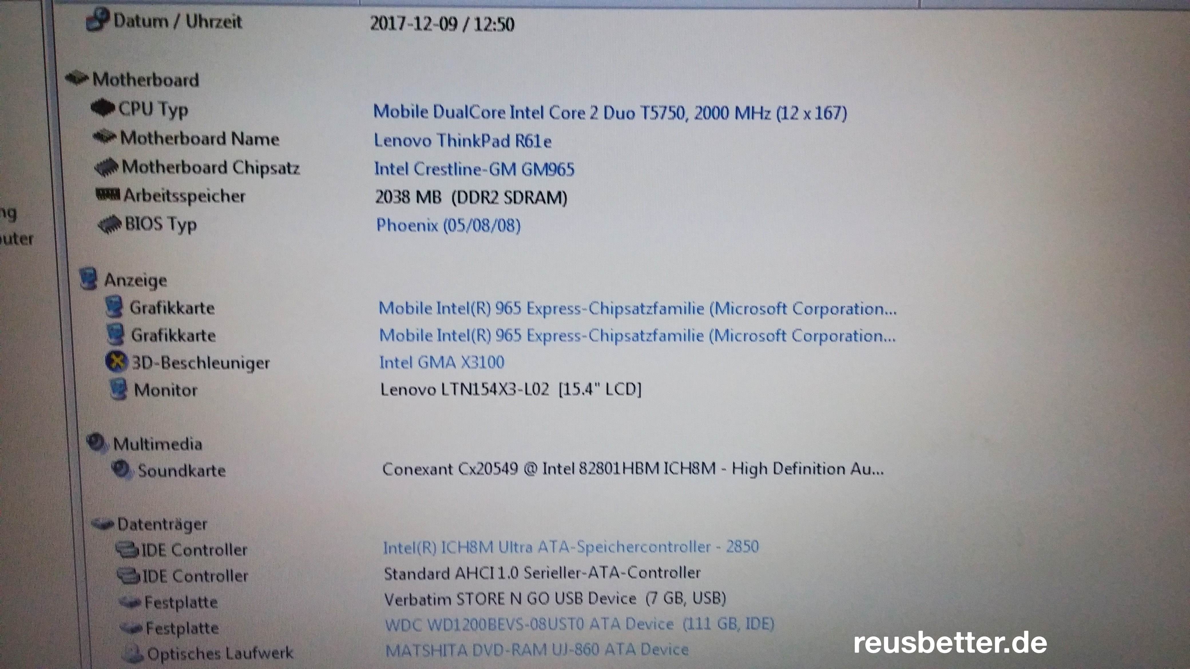 Prozessor: Mobile DualCore Intel Core 2 Duo CPU 2 GHz