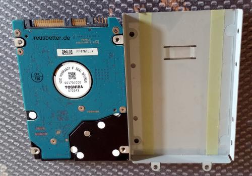 Die Festplatte besitzt einen 3 Gbps SATA Anschluss bei einer Bauhöhe von 2,5 Zoll. Sie verfügt über 160 GB Speicherkapazität womit die Festplatte von Toshiba einiges an Speicherplatz bietet. Mit einem 8 MB großen Cache wird für schnelle Zugriffszeiten zum lesen und schreiben gesorgt, welcher von 5400 Umdrehungen pro Minute unterstützt wird. Dies zeigt sich in Transferraten von bis zu 300 Megabyte pro Sekunde.