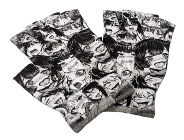 Preview: Manga Ahegao Motiv Handschuhe Manga Print Fingerlose Unisex Handschuhe
