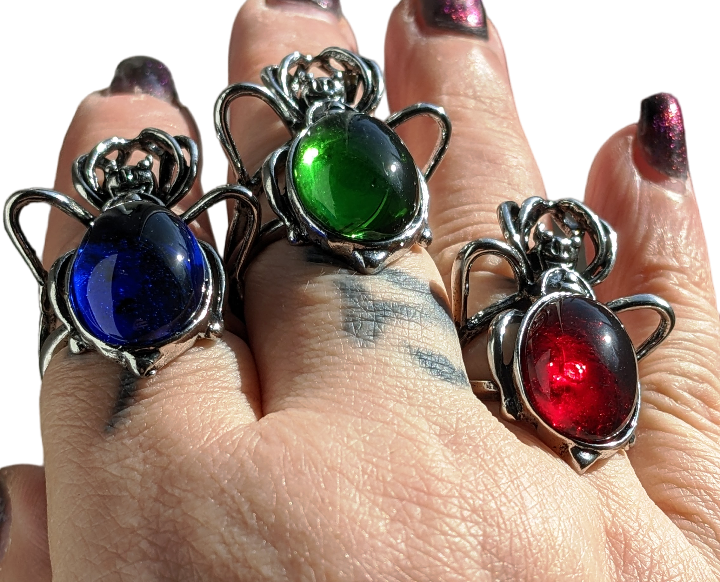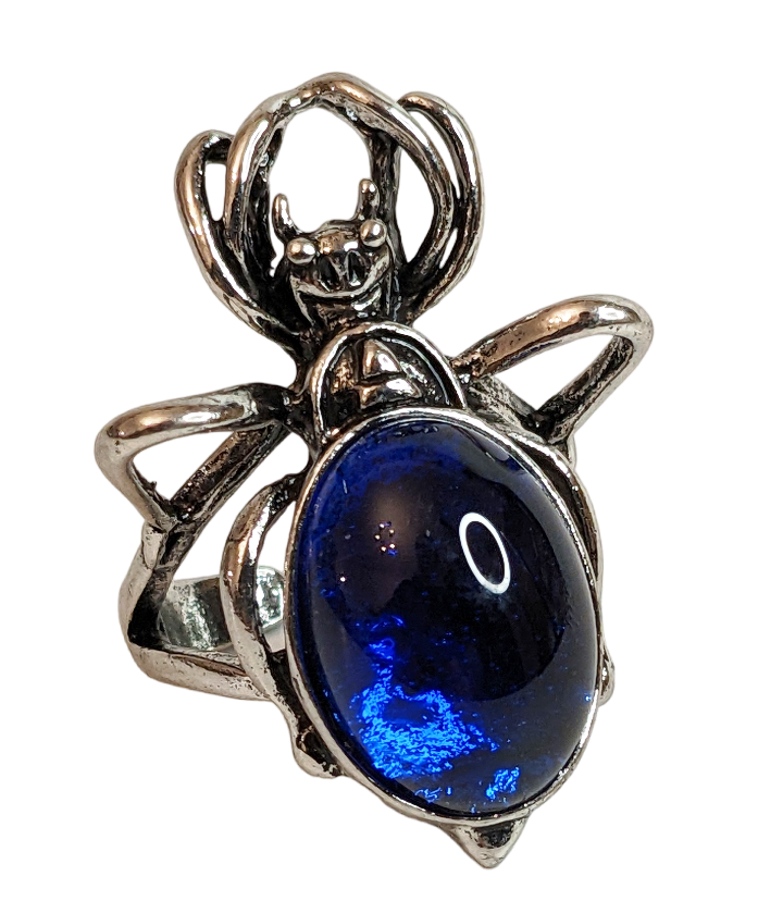 Gothic/Vintage Silberfarben Spinnenring mit Blauen Harzstein