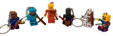 Set Besteht aus 1 Box, 1 Grundplatte, 1 Aufkleber, Schlüsselanhänger mit Kette aus Schaumstoff und 10 - 12 Bausteinen.