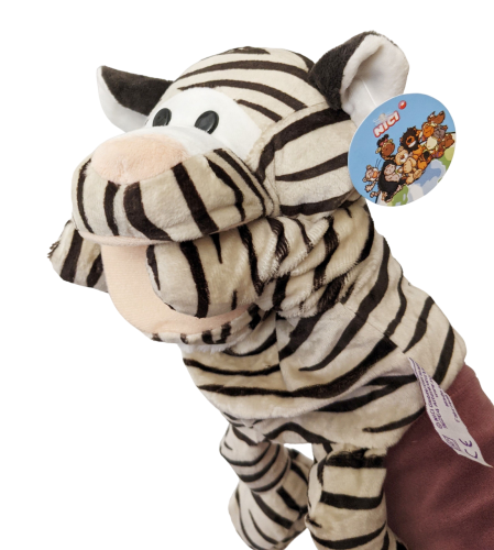 Handspielpuppe Tiger Handpuppe mit Klappmaul schwarz - weiß